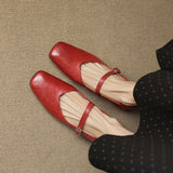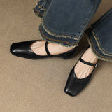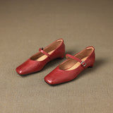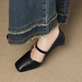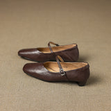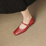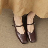 A softly structured square toe complements the genuine leather silhouette of these buckled mary jane pumps, crafted with a cushioned footbed for everyday style and comfort.