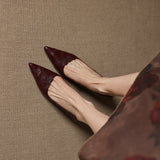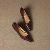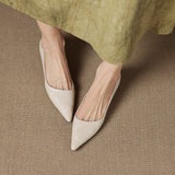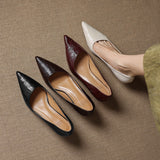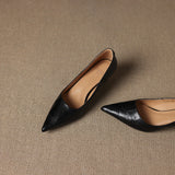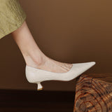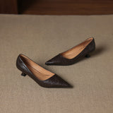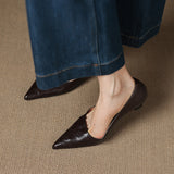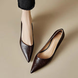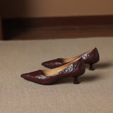 A sharp toe sculpts the smooth silhouette of these genuine leather pumps, finished with a cushioned insole and low kitten heel that ensures polished comfort and versatile styling on any occasion.