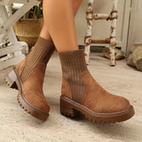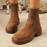 Eve Knit Boots – chic slip-on ankle boots designed for comfort and versatility. Featuring a soft leather upper, knit fabric, round toe, and mid-heel design, they pair perfectly with both casual and dressy outfits. The durable sole ensures steady steps, making them a must-have for everyday wear.